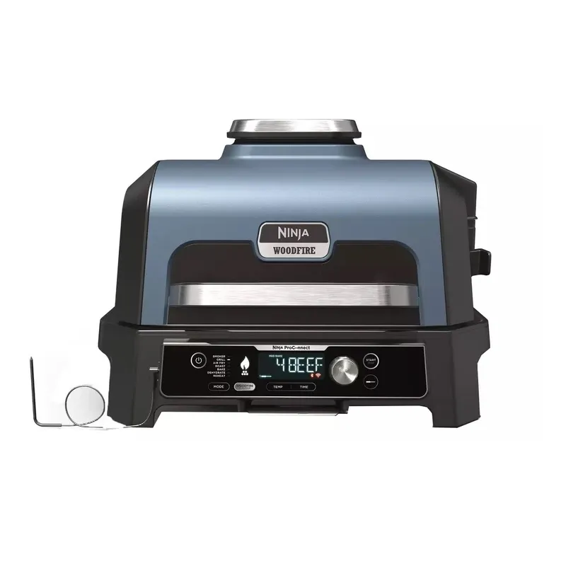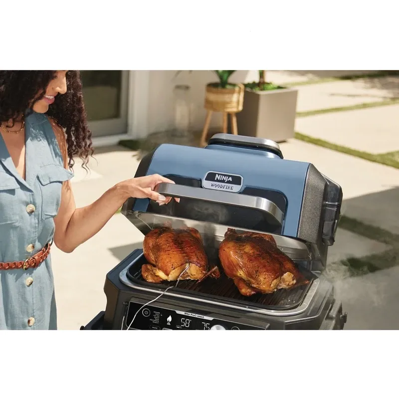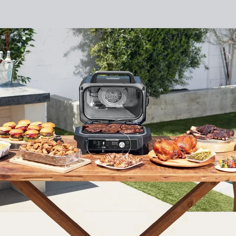 با گریل برقی Ninja Woodfire Pro Connect XL OG901 تجربه‌ای حرفه‌ای از باربِکیو، دوددار، ایرفراِی، پخت و گریل را در فضای باز داشته باشید. ظرفیت بزرگ تا 10 برگر یا 2 مرغ 3 کیلوگرمی، کنترل از طریق اپلیکیشن، فناوری دود چوبی واقعی و 7 عملکرد جامع، این گریل را به انتخاب ایده‌آل برای دورهمی‌ها و مهمانی‌های باغ و بالکن تبدیل کرده است.
